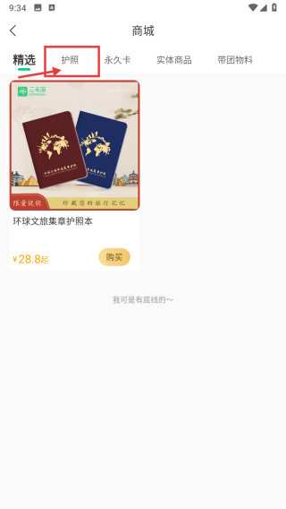 2、在商城頁面,點擊護照分類選項,進入護照商品列表頁面。