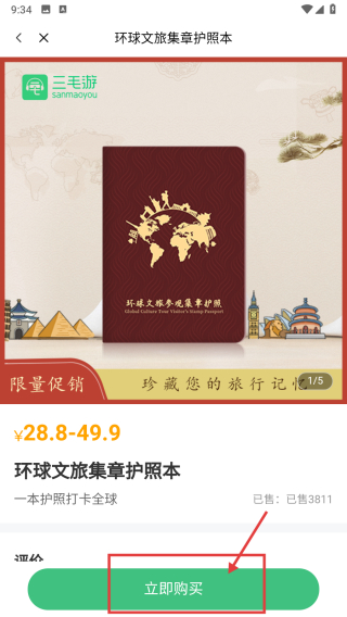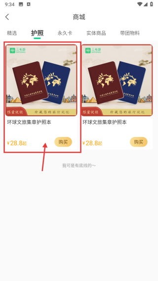 3、在護照商品列表中,點擊環(huán)球文旅集章護照本商品條目,進入商品詳情頁。