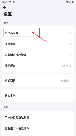 3、在設(shè)置頁(yè)面,點(diǎn)擊賬戶(hù)與安全選項(xiàng),進(jìn)入賬戶(hù)與安全頁(yè)面。