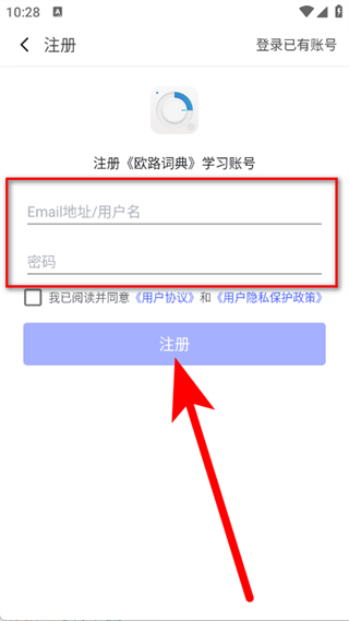 4、填寫Email地址/用戶名和密碼,勾選后,點(diǎn)擊注冊(cè),完成賬號(hào)注冊(cè)。