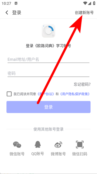 3、在登錄頁面,點(diǎn)擊創(chuàng)建新賬號(hào),進(jìn)入注冊(cè)頁面。