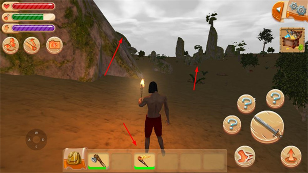 4、手持火把探索未知區(qū)域,發(fā)現(xiàn)新資源與場(chǎng)景,推進(jìn)生存進(jìn)程,拓展生存空間。