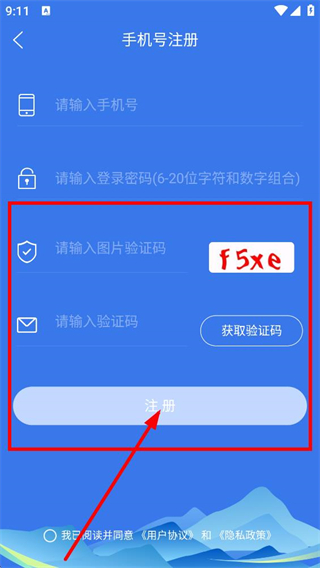4、隨后我們在手機號注冊頁面,輸入手機號和登錄密碼。