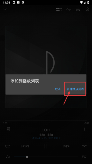 4、在操作選項(xiàng)框中,選擇新建播放列表,即可創(chuàng)建新的播放列表。