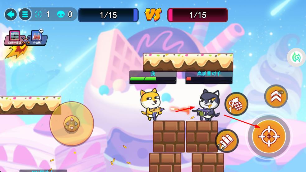 3、進入太空模式對戰(zhàn)后,通過左側(cè)搖桿控制角色移動,點擊右側(cè)射擊按鈕攻擊敵人,推進對戰(zhàn)進程。