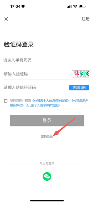3、在登錄頁面,點(diǎn)擊密碼登錄,切換到密碼登錄頁面。