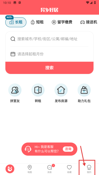 1、打開異鄉(xiāng)好居APP,點擊底部我的選項,進入個人中心頁面。