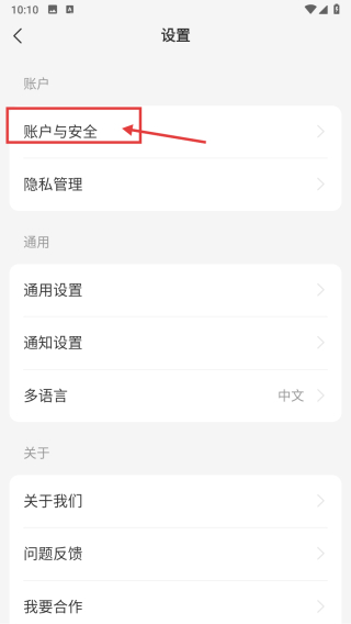 3、在設(shè)置界面,點擊賬戶與安全選項,進入賬戶與安全頁面。