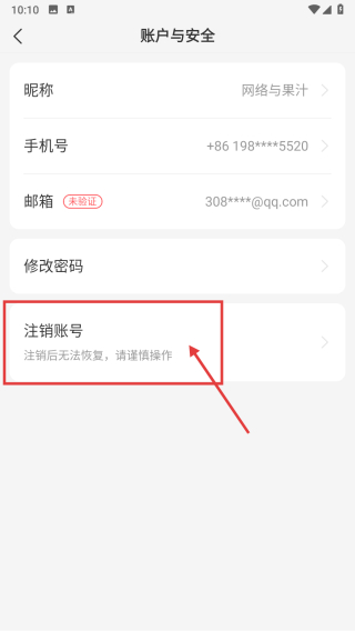 4、在賬戶與安全頁面,點擊注銷賬號選項,完成賬號注銷操作。