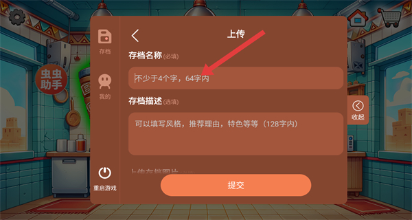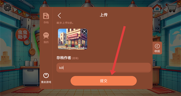 3、上傳頁面填寫存檔名稱、存檔描述、存檔作者,并上傳存檔圖片。