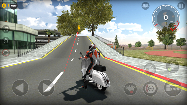 3、關(guān)注右上角時速表,控制摩托車速度,在彎道處減速,避免碰撞車輛和障礙物。