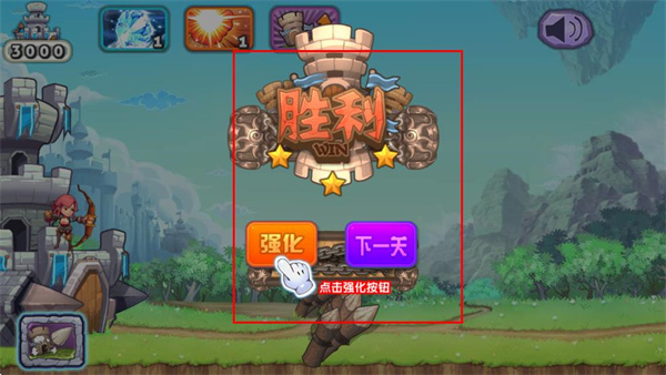 4、完成關(guān)卡后,界面顯示“勝利”,可點(diǎn)擊“強(qiáng)化”或“下一關(guān)”按鈕進(jìn)行后續(xù)操作。