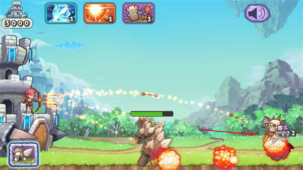 3、進(jìn)入游戲后,操控角色發(fā)射弓箭,攻擊前來(lái)的怪物。