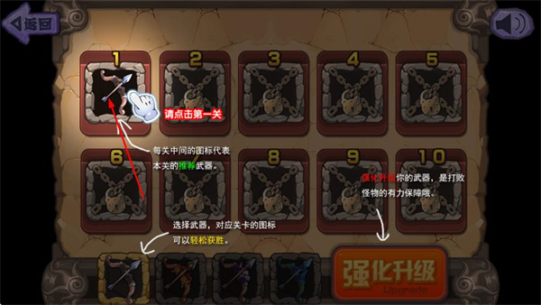 1、點(diǎn)擊帶有“關(guān)卡模式”的按鈕,進(jìn)入關(guān)卡選擇界面。