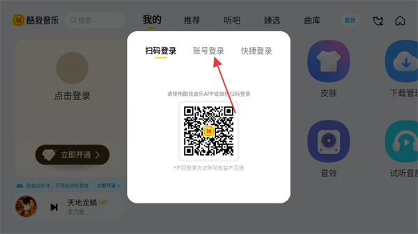 3、在登錄方式選擇框中,點(diǎn)擊賬號登錄選項(xiàng),切換到賬號登錄界面。