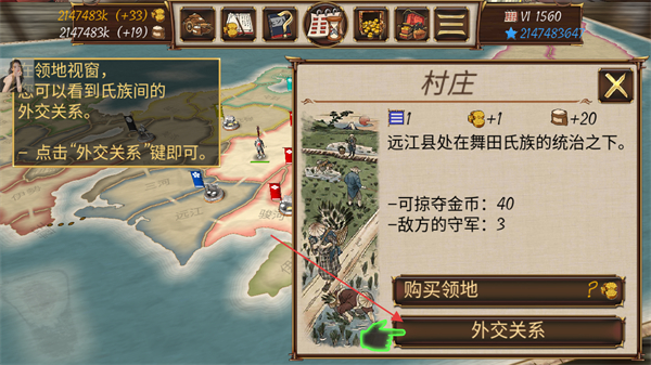 2、點(diǎn)擊外交關(guān)系,可查看氏族間的外交狀態(tài),如遠(yuǎn)江縣處于舞田氏族統(tǒng)治之下。