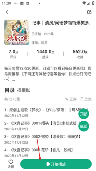3、在小說詳情頁面,點擊開始播放按鈕,可收聽該小說。