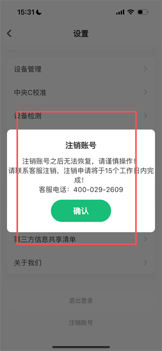 4、在注銷賬號確認(rèn)頁面,按照提示聯(lián)系客服,即可完成注銷。