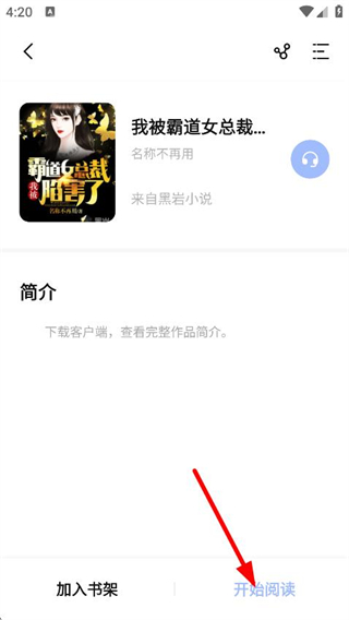 5、最后可以在小說詳情頁,點擊開始閱讀,開始閱讀小說。