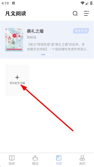 2、在書架頁面,點擊添加更多書籍,進入搜索頁面。