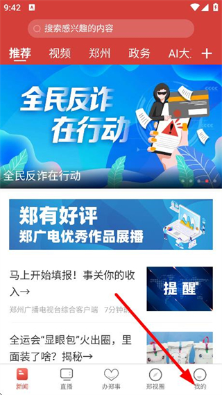 整合新聞、直播、辦鄭事、鄭視圈等多種核心功能,即可一站式享受信息獲取、事務辦理、社交互動等服務,功能布局清晰,滿足用戶在信息、服務、社交上的多元需求。