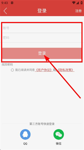 4、在登錄頁面,輸入賬號和密碼,點擊登錄,完成登錄操作。