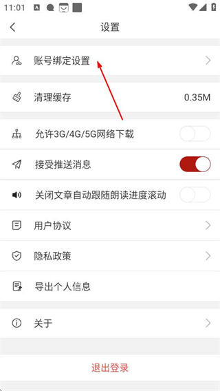 3、在設(shè)置頁面,點(diǎn)擊賬號(hào)綁定設(shè)置選項(xiàng),進(jìn)入賬號(hào)頁面。