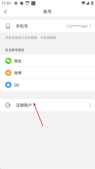 4、在賬號(hào)頁面,點(diǎn)擊注銷賬戶選項(xiàng),進(jìn)入申請(qǐng)注銷賬戶頁面。