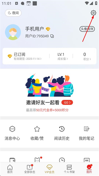 2、在個(gè)人頁面,點(diǎn)擊右上角設(shè)置圖標(biāo),進(jìn)入設(shè)置頁面。