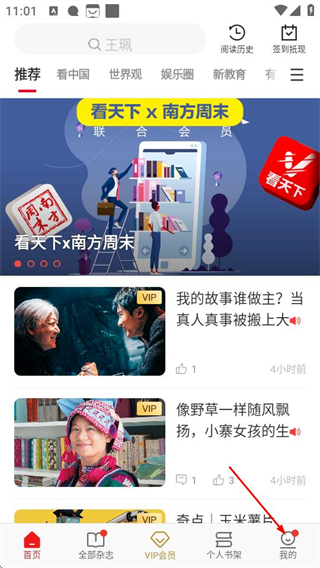 1、在看天下首頁,點(diǎn)擊右下角我的選項(xiàng),進(jìn)入個(gè)人頁面。