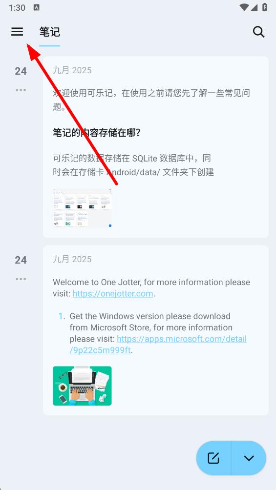 1、打開可樂記app,點擊左上角的菜單圖標,展開側(cè)邊欄菜單。