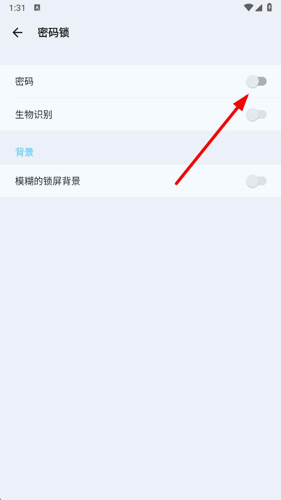 4、進入密碼鎖頁面后,點擊密碼后的開關(guān)按鈕。