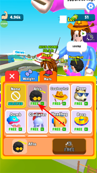 3、在外觀界面選擇如Afro之類的免費(fèi)帽子,可改變角色形象,這是增加角色趣味性的關(guān)鍵操作,可根據(jù)個(gè)人的審美偏好進(jìn)行挑選。