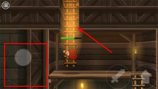 4、遇到梯子時靠近可自動攀爬,上下移動搖桿控制攀爬方向,攀爬過程中可躲避地面怪物攻擊,也能到達上層平臺探索新區(qū)域。