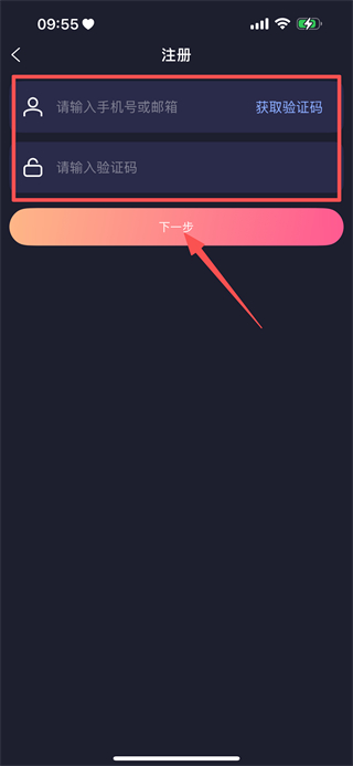 4、輸入手機(jī)號(hào)或郵箱,獲取驗(yàn)證碼并輸入,點(diǎn)擊下一步,完成注冊(cè)操作。