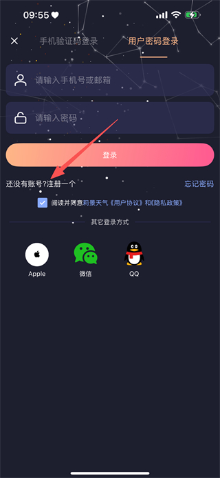 3、隨后可以在用戶密碼登錄界面,點(diǎn)擊注冊(cè)一個(gè),進(jìn)入注冊(cè)頁(yè)面。