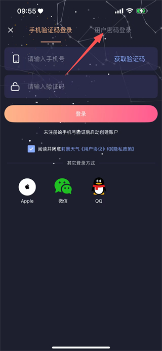 2、在登錄頁(yè)面,點(diǎn)擊用戶密碼登錄,切換到用戶密碼登錄界面。