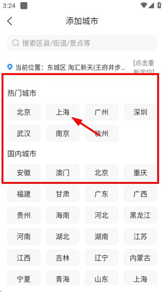 3、在添加城市頁面,可選擇城市,完成城市添加操作。
