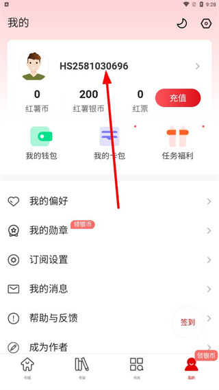 1、在紅薯小說(shuō)首頁(yè),點(diǎn)擊底部我的,進(jìn)入個(gè)人頁(yè)面。