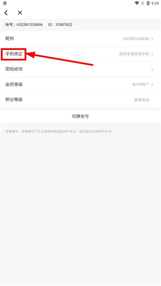 3、在賬號(hào)詳情頁(yè),點(diǎn)擊手機(jī)綁定,進(jìn)入手機(jī)綁定頁(yè)面。