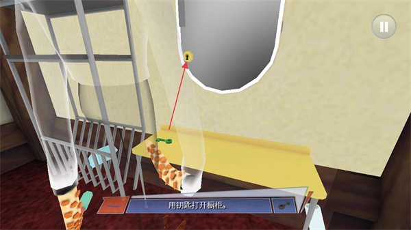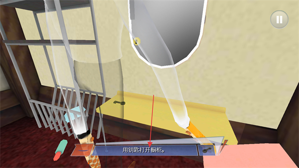 4、將鑰匙插入櫥柜鎖孔,打開櫥柜,推進游戲進程。