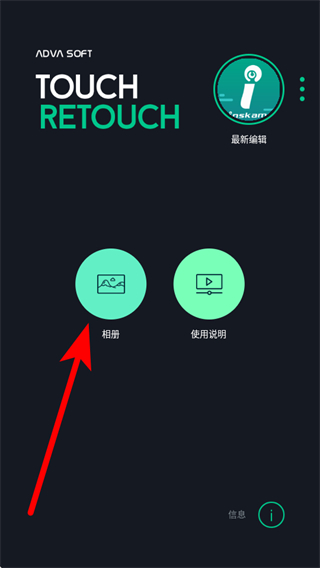 1.打開Retouch應用,點擊相冊按鈕,選擇需要編輯的圖片。