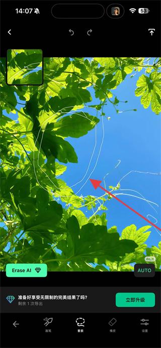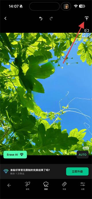 4.編輯完成后,可使用畫筆、橡皮等工具進一步調(diào)整,最后點擊右上角導出按鈕保存或分享圖片。