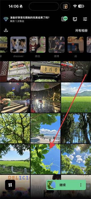 1、打開TouchRetouch應用,在相冊中選擇需要編輯的圖片,點擊繼續(xù)進入編輯頁面。