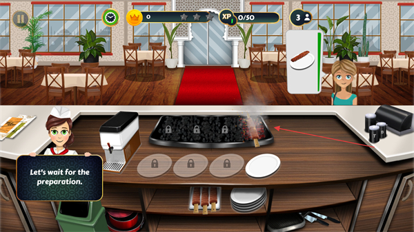 1、等待食材在烤架上完成烤制,界面會有提示Let's-wait-for-the-preparation。