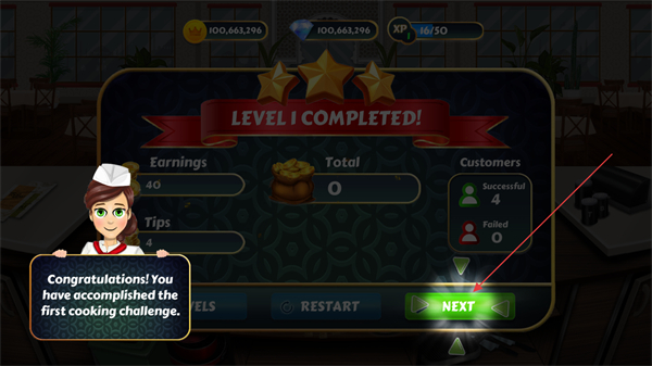 4、完成當前關卡的所有顧客訂單后,點擊NEXT按鈕進入下一關。