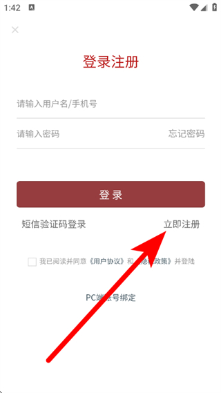 3、在登錄注冊頁面,點擊立即注冊,進入注冊頁面。