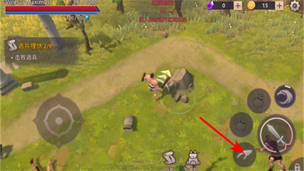 4、點(diǎn)擊拾起物品的圖標(biāo),可對(duì)敵人發(fā)起遠(yuǎn)程攻擊,這是應(yīng)對(duì)遠(yuǎn)距離敵人的有效手段,使用時(shí)需瞄準(zhǔn)敵人位置確保命中。