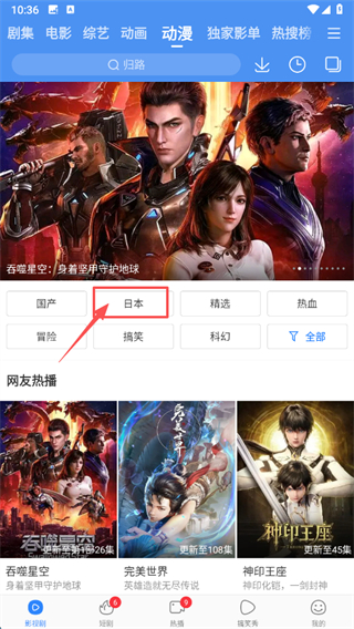 2、在動漫頁面,點擊日本標(biāo)簽,篩選日本動漫。