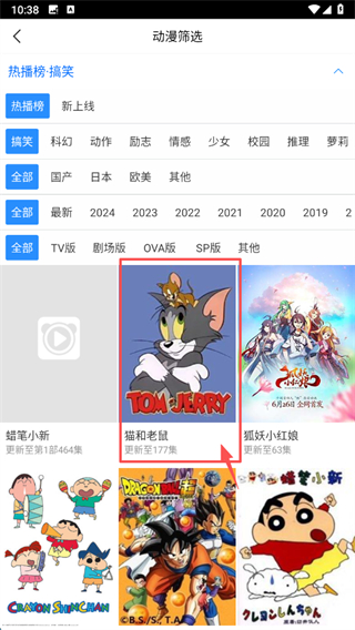 3、在篩選后的動漫列表里,點擊貓和老鼠條目,進入動漫詳情頁。